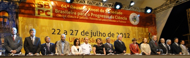 O reitor Natalino Salgado declarou que receber a 64ª Reunião Anual da SBPC, o mais importante evento científico da América Latina, é um presente para São Luís, que daqui a menos de dois meses completará 400 anos. “A cidade é berço de ilustres intelectuais de diversas áreas do conhecimento.” Ele ressaltou que o encontro não é apenas mais um evento realizado na universidade – representa um momento de transição, em que a UFMA está se transformando numa cidade universitária de fato. “Alegra-me profundamente vivenciar essa ocasião, que era um sonho para São Luís”, comentou.