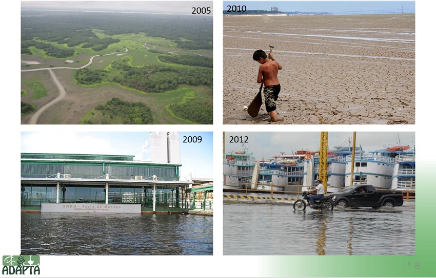 Observou-se, por exemplo, danos ao DNA do tambaqui a partir da exposição à radiação solar. “Os organismos aquáticos tropicais são vulneráveis aos processos de aquecimento global e acidificação.” O Adapta II incluiu em seus estudos a segurança alimentar e propostas para mitigar e minimizar os efeitos das mudanças climáticas na região.