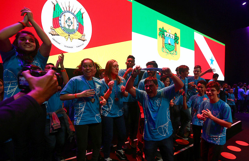 Os estudantes vencedores da 13ª edição da Olimpíada Brasileira de Matemática das Escolas Públicas (OBMEP) comemoraram a vitória com as medalhas de ouro entregues durante o Congresso Internacional de Matemáticos (ICM, na sigla em inglês), que ocorreu de 01 a 09 de agosto, no Rio de Janeiro. A solenidade aconteceu na quinta-feira (02), e premiou 575 alunos e alunas do 6º ano do ensino fundamental até o último ano do ensino médio.