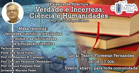 O professor Luiz Pinguelli Rosa, membro titular da Academia Brasileira de Ciências, dará início ao encontro com a palestra: “Verdades e Incertezas, Ciências e Humanidades”. A palestra acontecerá no dia seis de agosto, às 17h, no Teatro Florestan Fernandes.