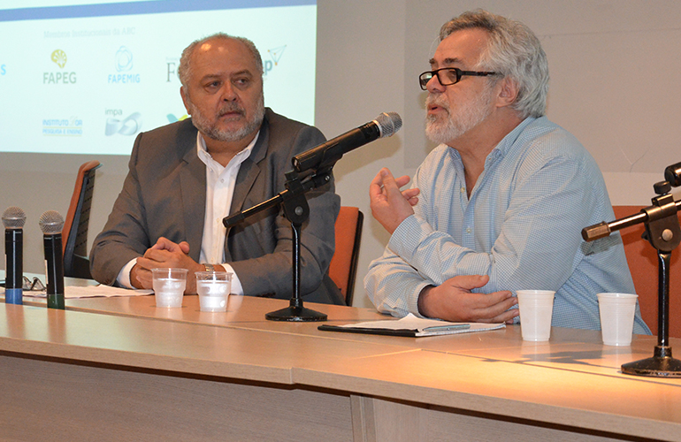 O moderador da mesa Romildo Toledo Filho, da Coppe, e Alfred Renault, da ANP.