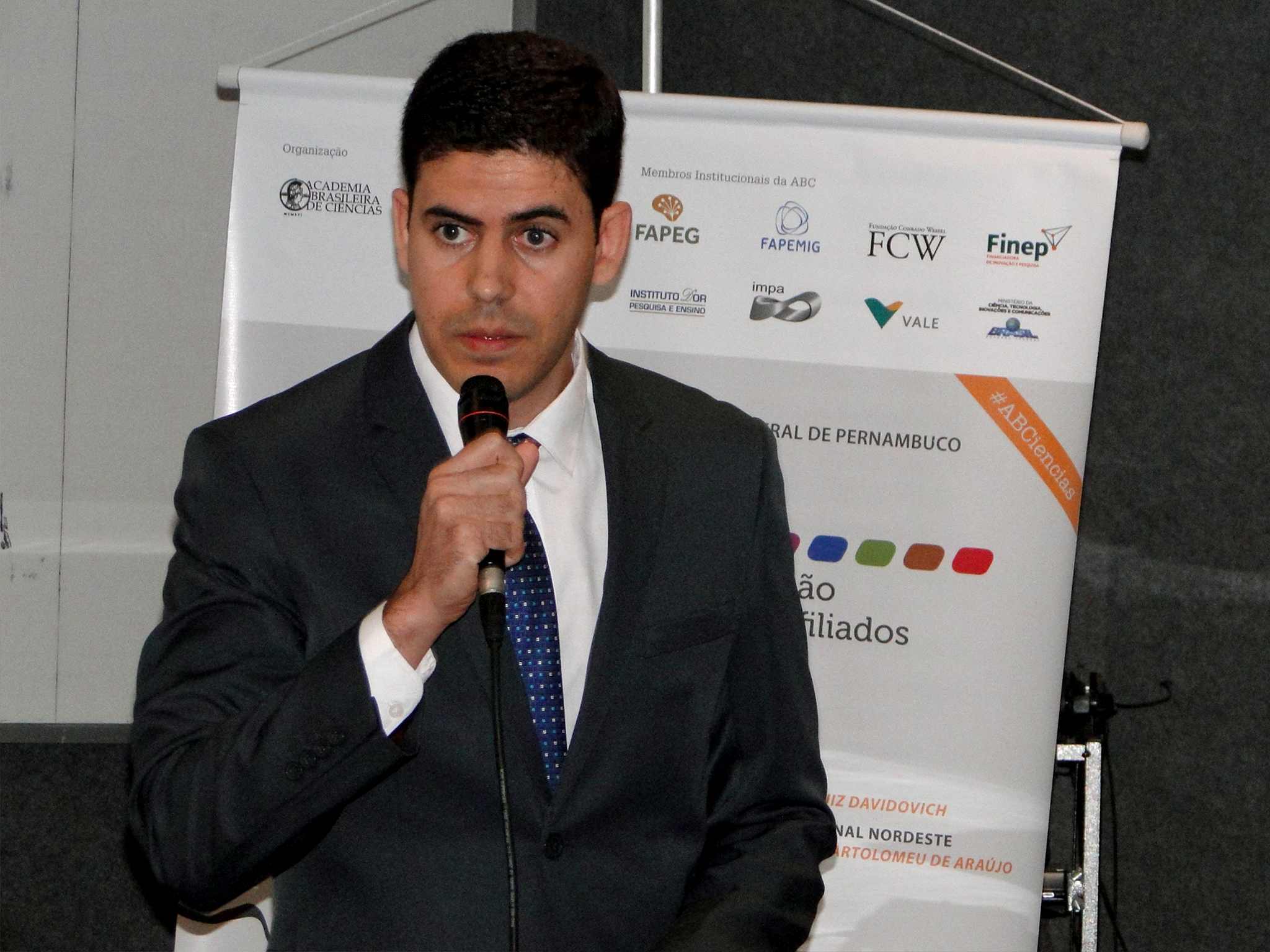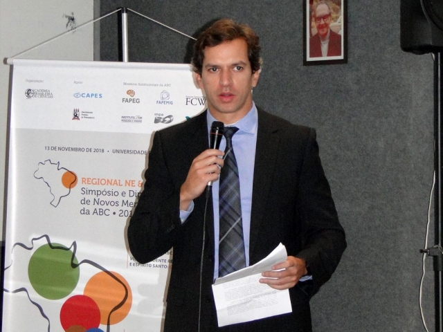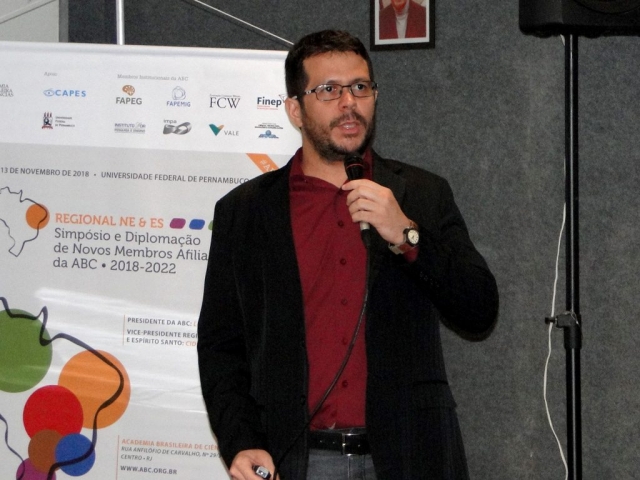 O vice-presidente Regional contou um pouco da história da ABC, ressaltando sua missão de promoção da qualidade científica e do avanço da ciência brasileira. Apresentou as categorias de membros existentes, esclarecendo que os titulares são vitalícios e não imortais, como na Academia Brasileira de Letras. Relatou que a categoria de membros afiliados foi criada em 2007, tendo o primeiro grupo de eleitos sido empossado para o período 2008-2012. “Destes 303 jovens cientistas que já passaram pelo mandato de cinco aos, seis já foram eleitos como membros titulares: Ado Jório de Vasconcelos (2014), Fernando Codá dos Santos Cavalcanti Marques (2014), Eduardo Vasconcelos Oliveira Teixeira (2015), Henrique Bursztyn (2017), Antônio Gomes de Souza Filho (2018) e Alicia Kowaltowski (2018).