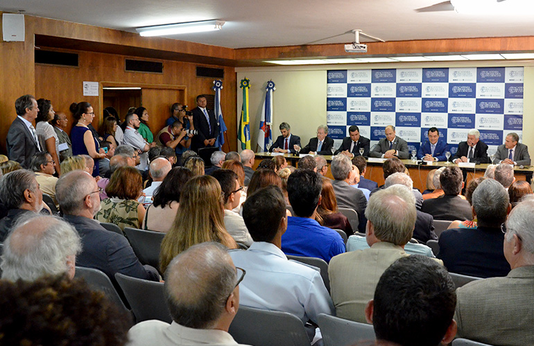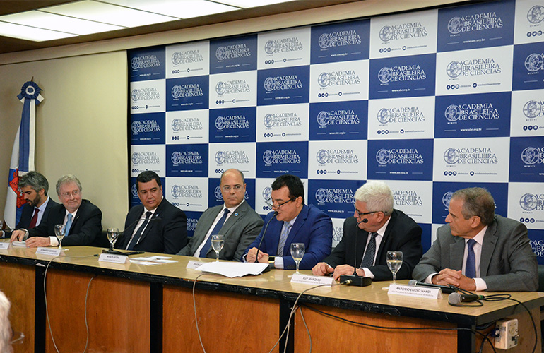 Compondo a mesa, participaram também o presidente da ABC, Luiz Davidovich; o governador do Rio de Janeiro, Wilson Witzel; o Secretário de Estado de Ciência, Tecnologia e Inovação, Leonardo Rodrigues; o reitor da Universidade do Estado do Rio de Janeiro (Uerj), Ruy Garcia Marques; o presidente em exercício da Financiadora de Estudos e Projetos (Finep), André Godoy; e Antonio Egídio Nardi, vice-presidente da Academia Nacional de Medicina.