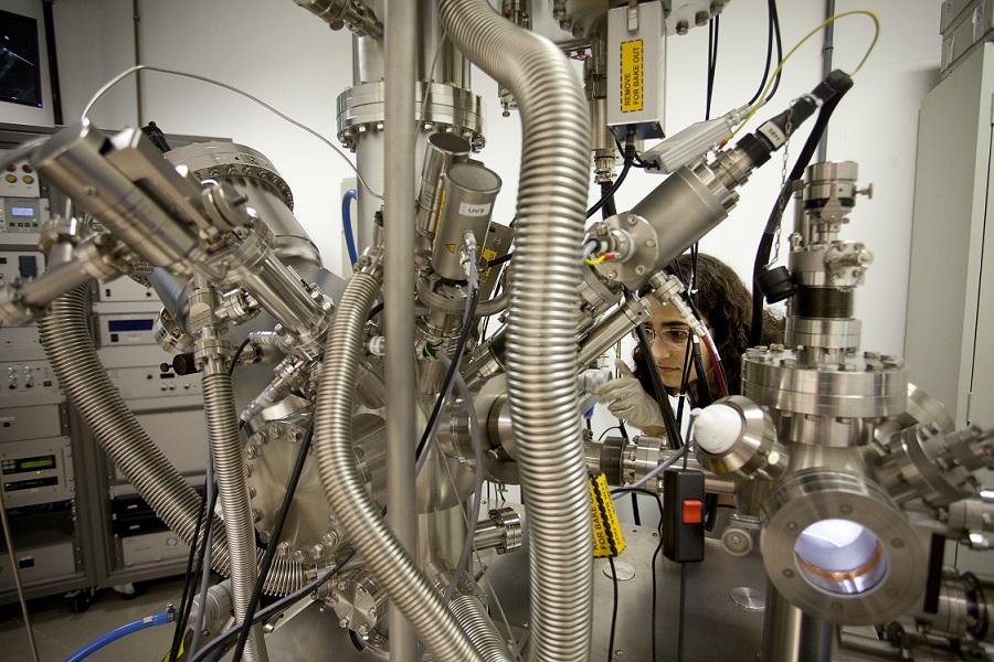 Pós-graduanda do CBPF trabalhando em equipamento XPS, que emprega raios X para analisar a