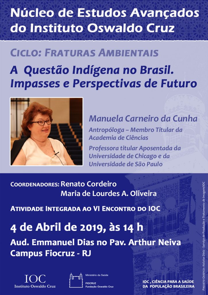 Co-fundadora, em 1979, e presidente da Comissão Pró-Índio, de 1979 a 1981, a antropóloga Manuela Carneiro da Cunha apresenta a conferência de tema: “A Questão Indígena no Brasil. Impasses e Perspectivas de Futuro” no dia 4 de abril, às 14h, no Auditório Emmanuel Dias / Pavilhão Arthur Neiva, na Fiocruz. A palestra é gratuita e aberta ao público geral.