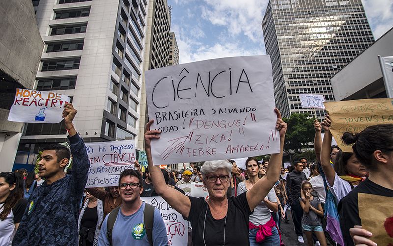 Scientists in São Paulo, Brazil, protest deep cuts in their funding. Photograph by Cris Faga, NurPhoto via Getty Images
