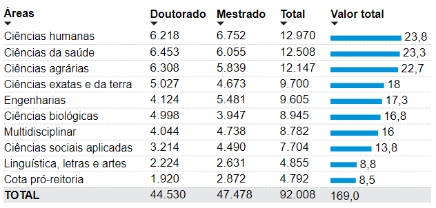 Fonte: Coordenação de aperfeiçoamento de pessoal de nível superior (Capes) / O Globo