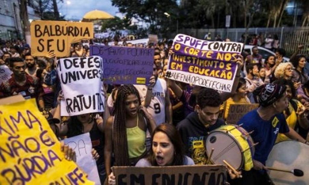 Estudantes da UFF protestam contra corte de verbas para o ensino superior. Foto: Pablo Jacob