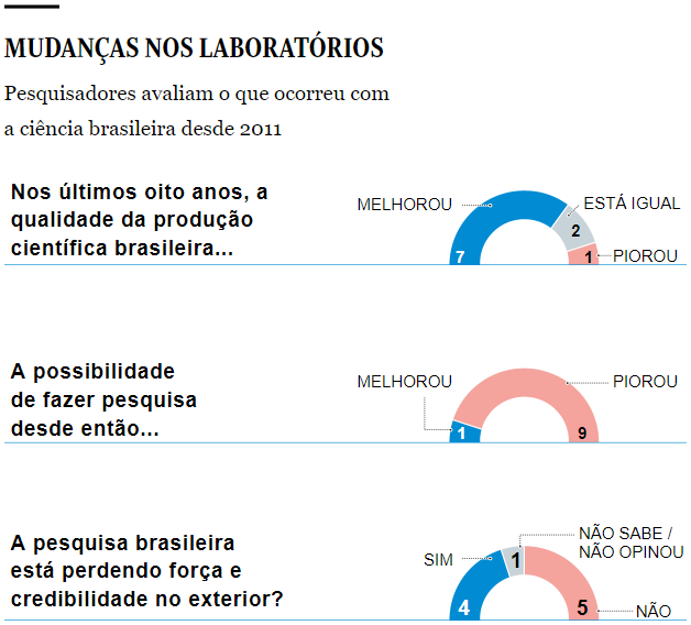 Hoje, o cenário é outro. O Ministério da Ciência, Tecnologia, Inovações e Comunicações chegou a perder 42% de seu orçamento — o ministro Marcos Pontes tenta negociar o retorno da verba bloqueada. A reportagem procurou dez dos cientistas entrevistados em 2011 e ouviu um diagnóstico mais sombrio sobre como é o trabalho no setor em 2019.