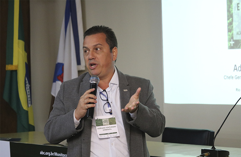 Encerrando a sua apresentação, Rodrigues estabeleceu qual deveria ser o diferencial da agricultura brasileira, e mais uma vez a sustentabilidade se fez presente no seminário, como objetivo para alcançar o desenvolvimento do país: agropecuária sustentável praticada em paisagem de elevada diversidade natural.