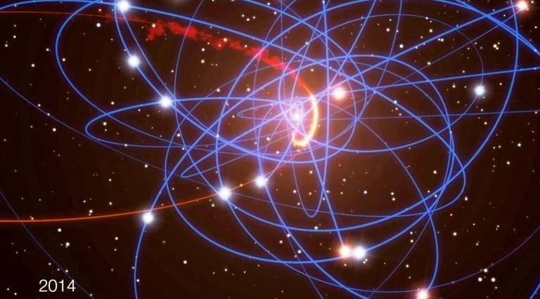 Lembro-me de uma Conferência de 2002, em Granada, Espanha, da qual participei, e na qual o Genzel revelou que suas observações mais recentes da estrela conhecida como S2, que já duravam 10 anos, permitiram definir sua órbita Kepleriana de alta excentricidade em torno do centro da Via Láctea, mostrando que o periastro estava a somente 17 horas luz da fonte de rádio Sagitarius A* (Sgr. A*), considerada como marcadora do centro da Via Láctea. A órbita assim determinada requeria uma massa central de 4 milhões de massas solares, não permitindo outra solução (por exemplo, o aglomerado denso de estrelas escuras) que não fosse a presença de um buraco negro supermassivo em Sgr. A*, e o resultado foi publicado no mês de Outubro de 2002 na revista Nature.