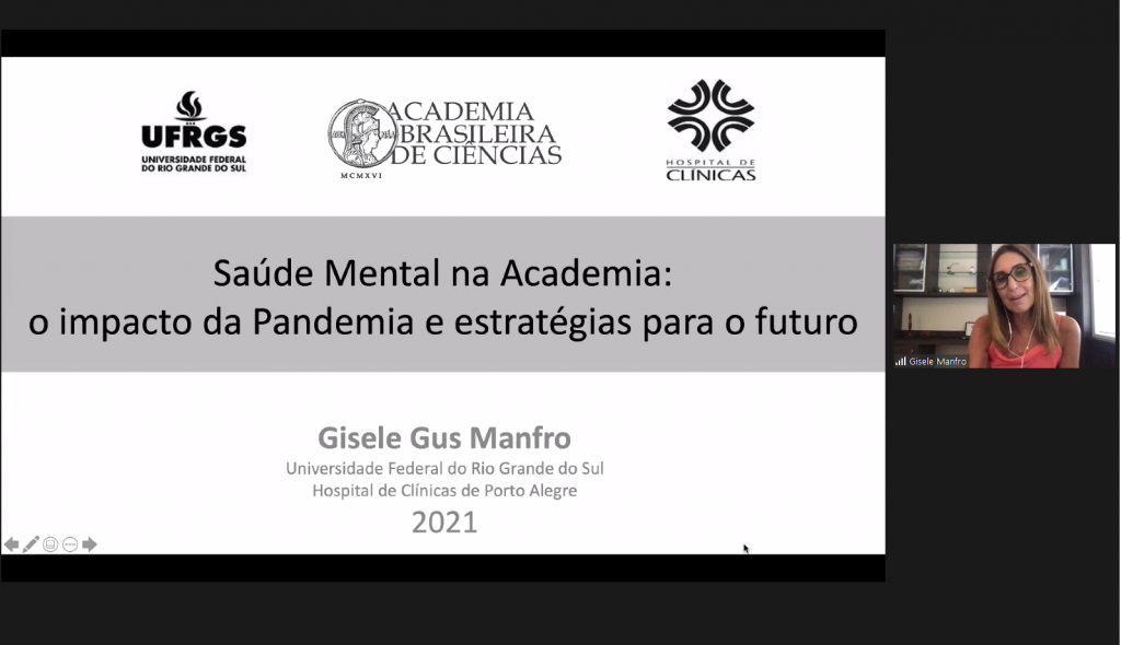 Na última sexta-feira de fevereiro (26), ocorreu a 5ª Mentoria da ABC, intitulada “Saúde Mental na Academia: o impacto da pandemia e estratégias para o futuro”. A palestra foi ministrada pela pesquisadora e psiquiatra Gisele Gus Manfro, doutora em ciências biológicas/bioquímica e medicina pela Universidade Federal do Rio Grande do Sul (UFRGS) e professora do Programa de Pós Graduação em Ciências Médicas/Psiquiatria da UFRGS. Manfro também coordena o Programa de Transtornos de Ansiedade (Protan) do Hospital de Clínicas de Porto Alegre (HCPA).