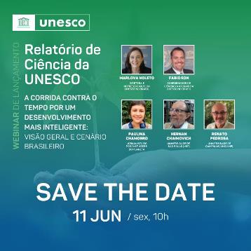 No dia 11 de junho, 6a feira, às 10h (GMT-3) será lançado em webinário o Relatório de Ciência da Unesco, cujo título é “A corrida contra o tempo por um desenvolvimento mais inteligente: visão geral e cenário brasileiro“.