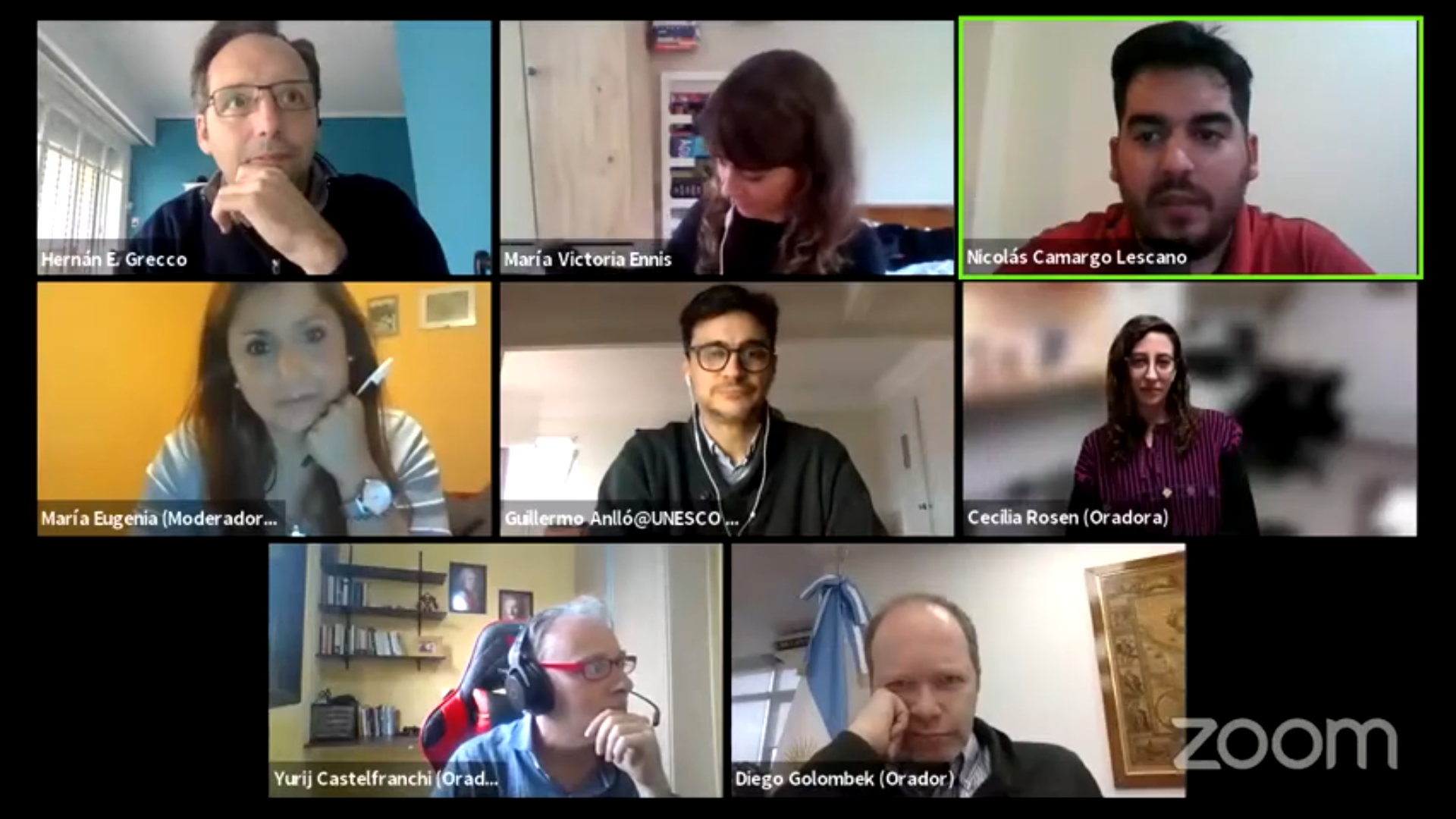 O evento foi moderado pela socióloga Maria Eugenia Conforti (Argentina) e teve como palestrantes o economista Guillermo Anlló (Argentina), o sociólogo Yurij Castelfranchi (Brasil), a jornalista de ciência Cecilia Rosen (México) e o biólogo Diego Golombek (Argentina).