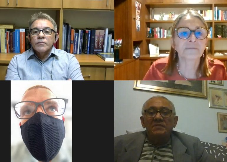 Os participantes do debate Eurico Arruda, Helena Nader, Pedro Hallal e Pedro Vasconcelos