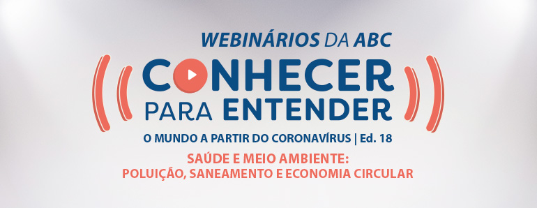 SERVIÇO Evento: Webinários da ABC | O mundo a partir do Coronavírus, Ed.18 | SAÚDE E MEIO AMBIENTE: POLUIÇÃO, SANEAMENTO E ECONOMIA CIRCULAR Data: 3ª feira, 4/8/2020 Hora: 16h (GMT-3) Evento no Facebook: FanPage Local: dev.abc.org.br/transmissao