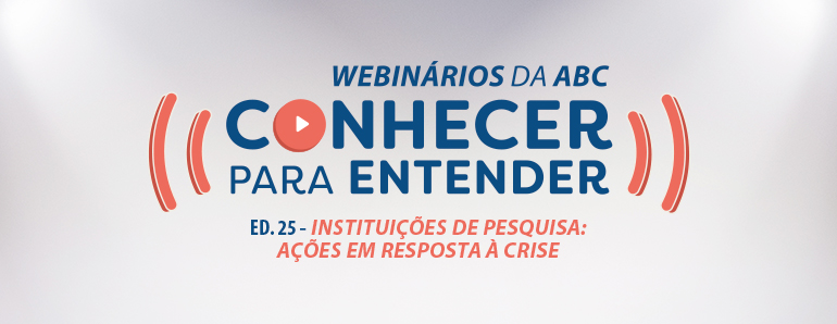 A emissão do certificado de participação acontecerá em até 30 dias úteis.SERVIÇO Evento: WEBINÁRIOS DA ABC | CONHECER PARA ENTENDER ED.25 | INSTITUIÇÕES DE PESQUISA: AÇÕES EM RESPOSTA À CRISE Data: 3ª feira, 13/10/2020 Hora: 16h (GMT-3) Evento no Facebook: FanPage Local: dev.abc.org.br/transmissao